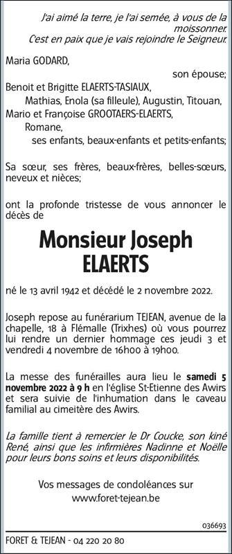 Décédé à Awirs (4400) le mercredi 2 novembre 2022 à l'âge de 80 ans