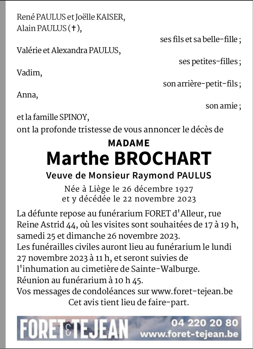 Décédée à Liège (4000) le mercredi 22 novembre 2023 à l'âge de 95 ans