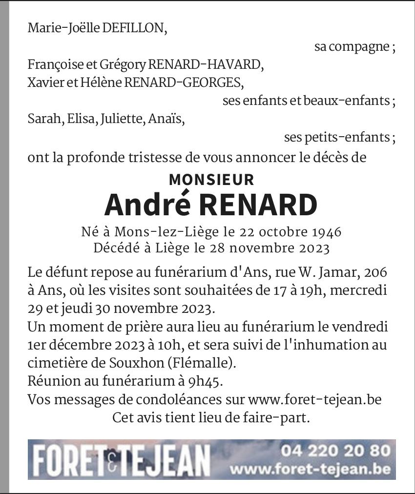 Décédé à Liège (4020) le mardi 28 novembre 2023 à l'âge de 77 ans