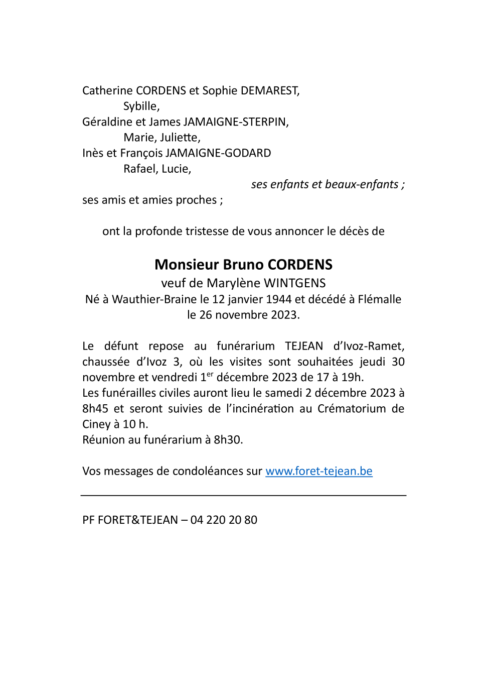 Décédé à Ivoz-Ramet (4400) le dimanche 26 novembre 2023 à l'âge de 79 ans