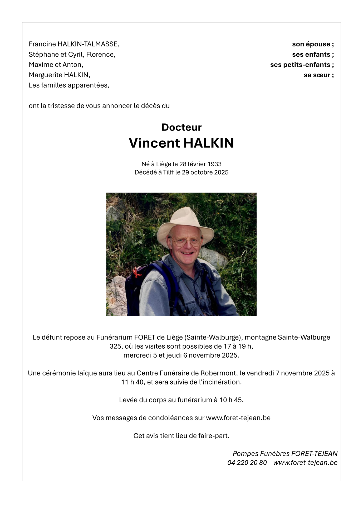 Décédé à Tilff (4130) le mercredi 29 octobre 2025 à l'âge de 92 ans
