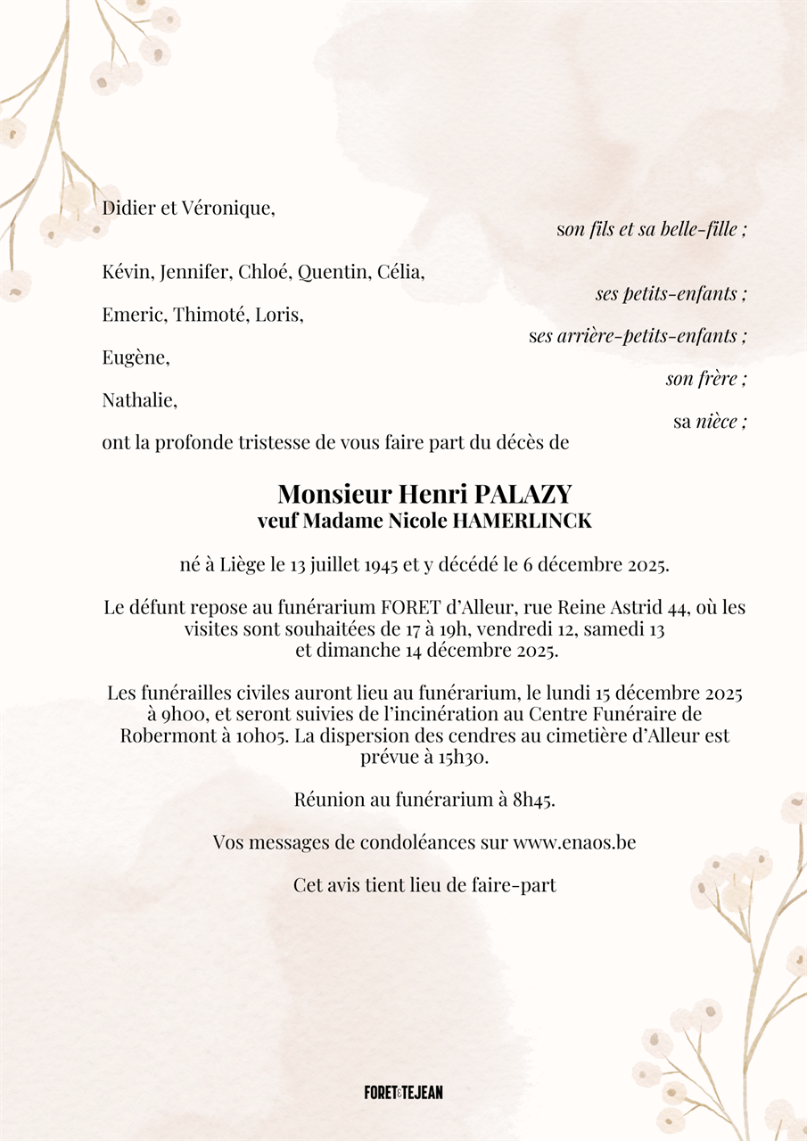 Décédé à Liège (4000) le samedi 6 décembre 2025 à l'âge de 80 ans