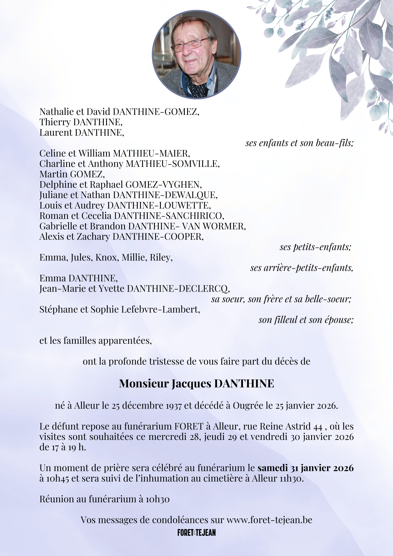 Décédé à Ougrée (4102) le dimanche 25 janvier 2026 à l'âge de 88 ans
