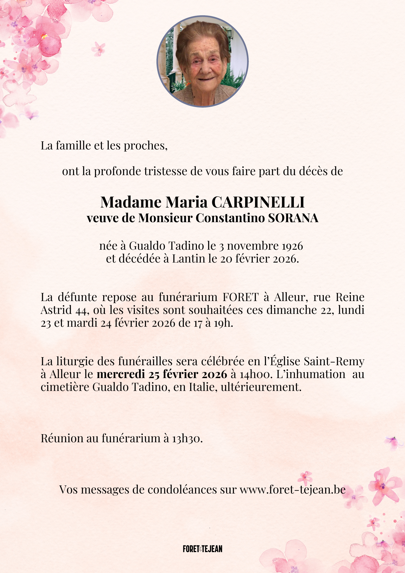 Décédée à Lantin (4450) le vendredi 20 février 2026 à l'âge de 99 ans