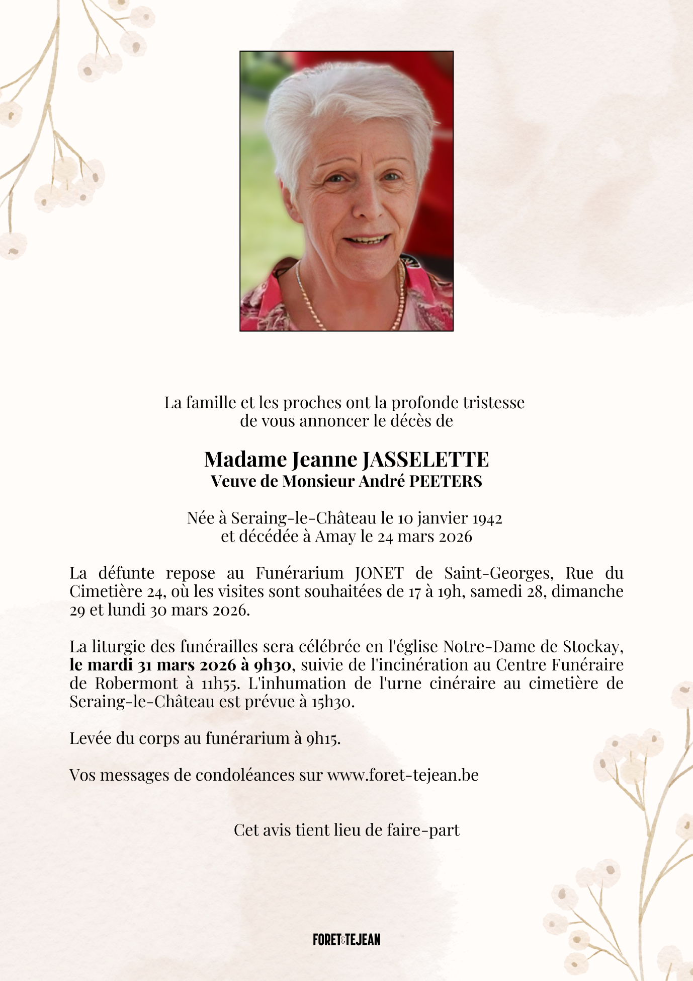 Décédée à Amay (4540) le mardi 24 mars 2026 à l'âge de 84 ans