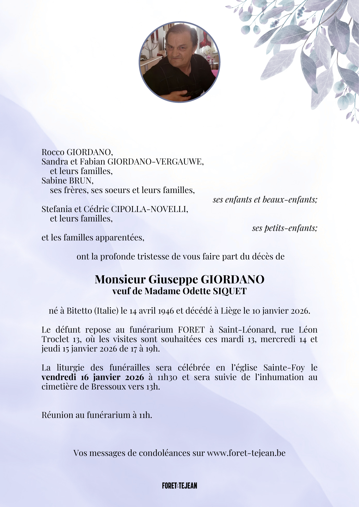 Décédé à Liège (4000) le samedi 10 janvier 2026 à l'âge de 79 ans