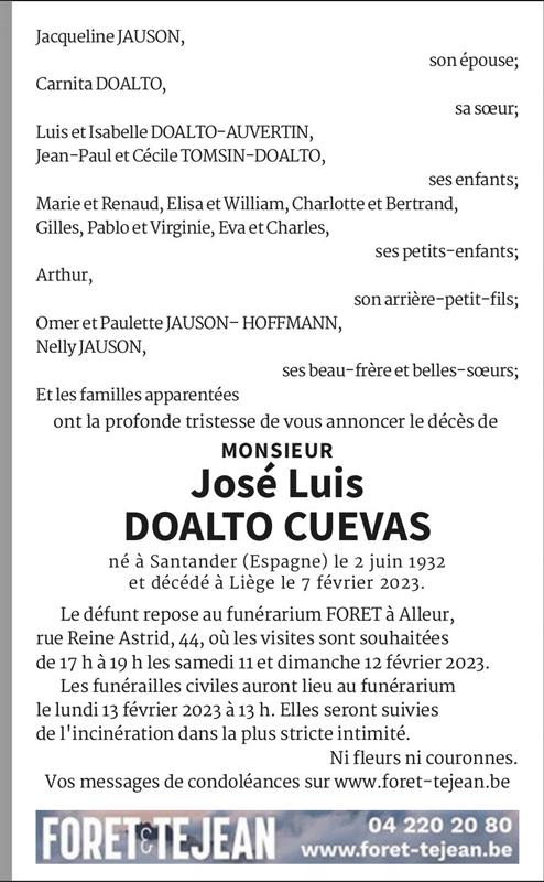 Décédé à Liège (4000) le mardi 7 février 2023 à l'âge de 90 ans