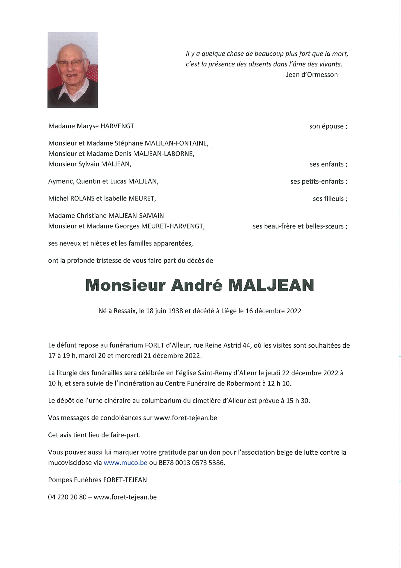 Décédé à Liège (4000) le vendredi 16 décembre 2022 à l'âge de 84 ans