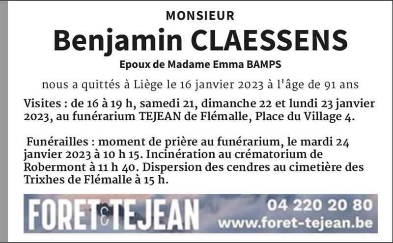 Décédé à Liège (4000) le lundi 16 janvier 2023 à l'âge de 91 ans