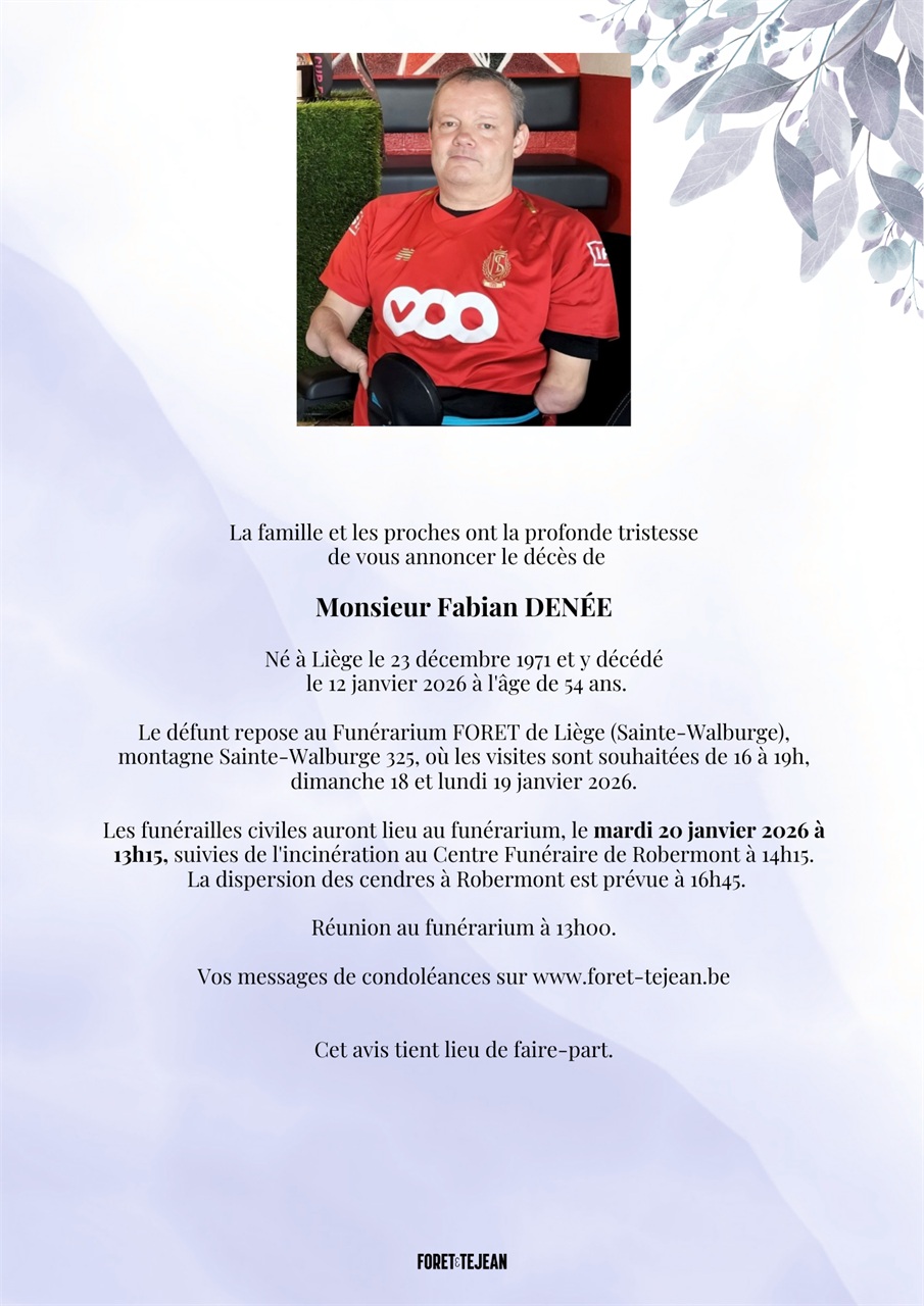 Décédé à Liège (4000) le lundi 12 janvier 2026 à l'âge de 54 ans