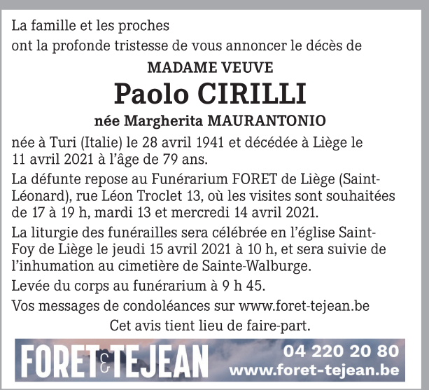 Veuve de Monsieur Paolo CIRILLI